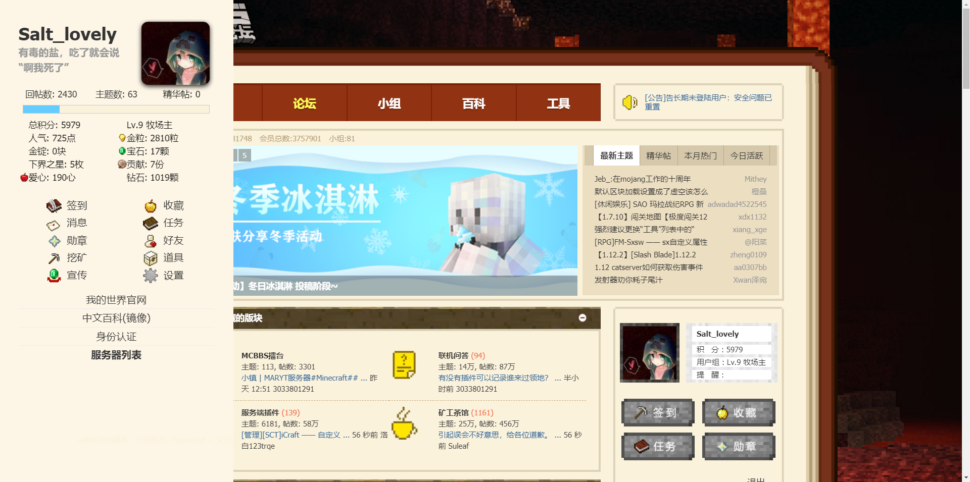 saltMCBBS是盐自己捣鼓的一个MCBBS扩展脚本。